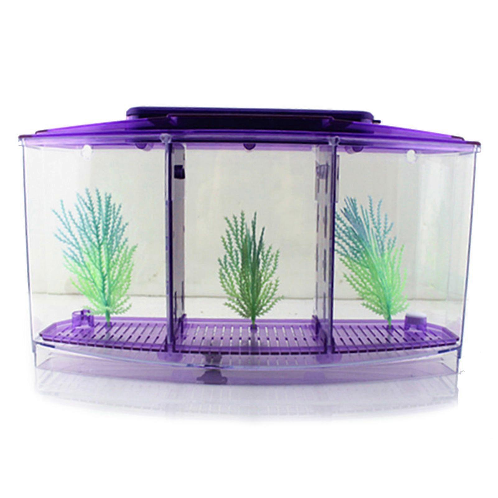 Betta Bowl Mini Aquarium Kit Fish Breeding Hatchery Acrylic Incubator Isolation Box for office home( Triple-Purple)