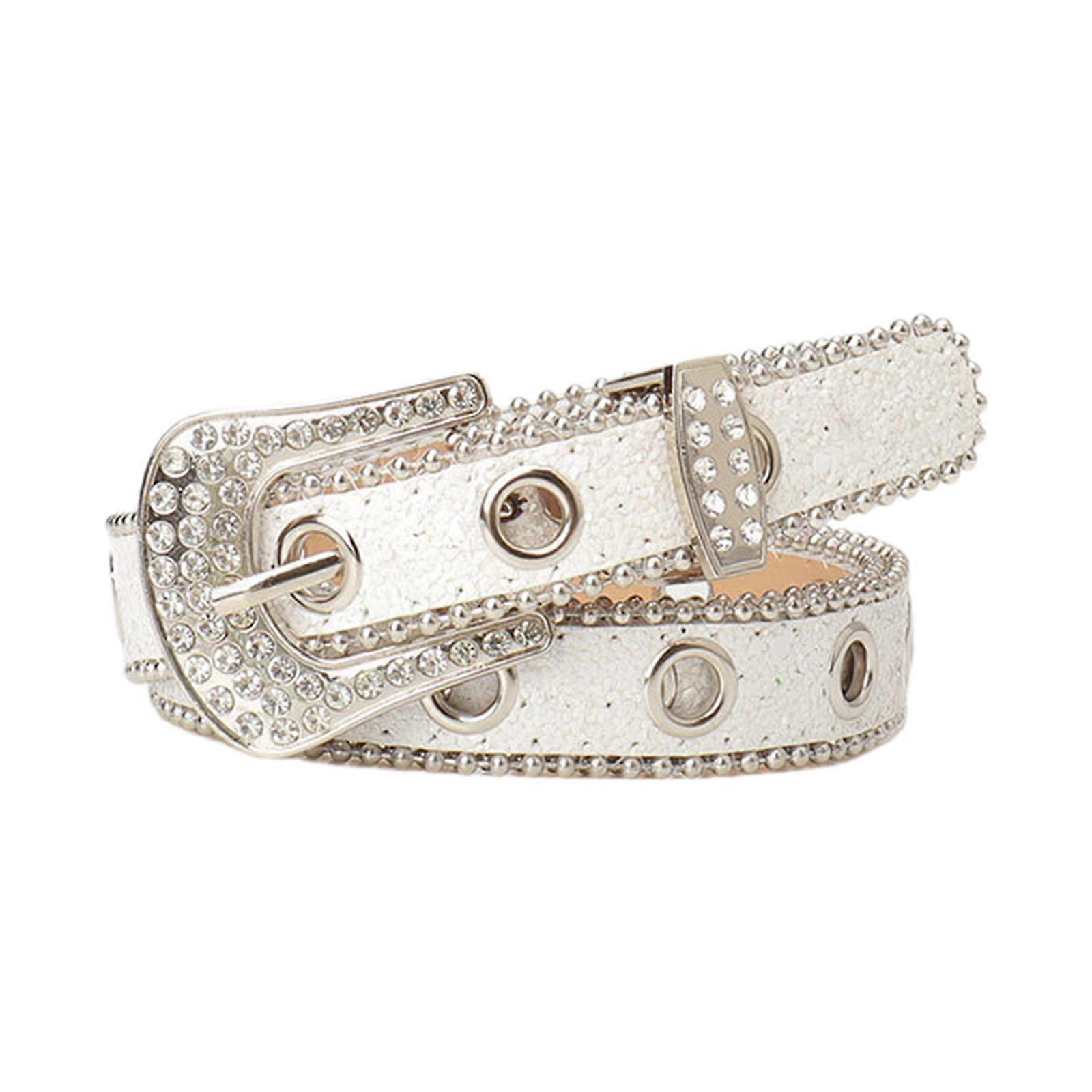 Blingbling Waist Belt for Street Dance Jean Belt Livehouse Punk Waist Chain Stunning Grommet Rhinestones White S