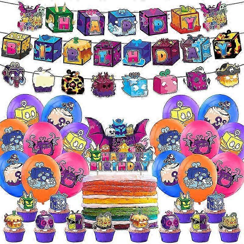 Blox Fruits theme birthday party decoration game box birthday flag cake insert balloon pull flower