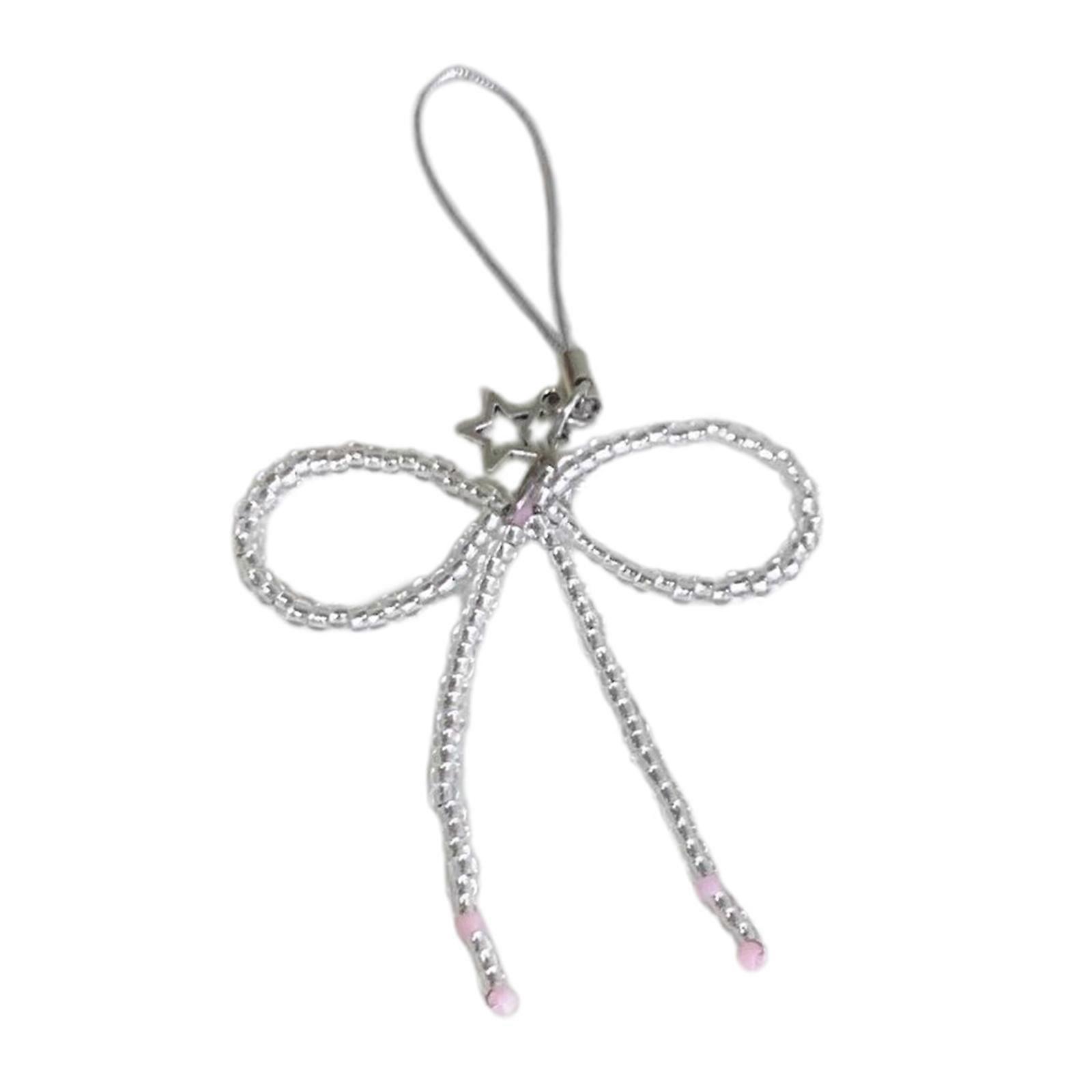 Bowknot Star Pendant Phone Charm Hanging Rope Y2K Phone Chain Strap Bag Decoration Lanyards Keychain Accessories Silver