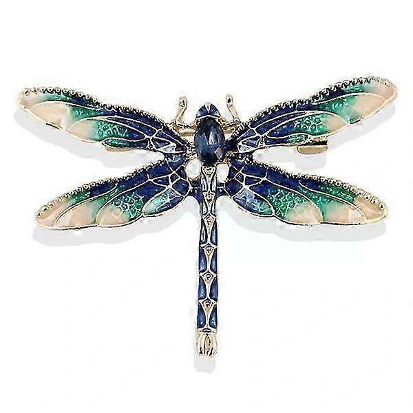 A small brooch in the shape of a dragonfly.Dragonfly ModelSize 4835mmMaterial Rhinestone, enamelColor Blue, green, white, goldDelivery from warehouse in Sweden