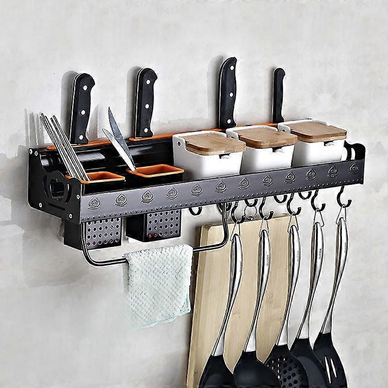 C Version 60cm 2 Cups 10 Hooks Kitchen Multi-function Wall-mounted Condiment Storage Rack (Black)