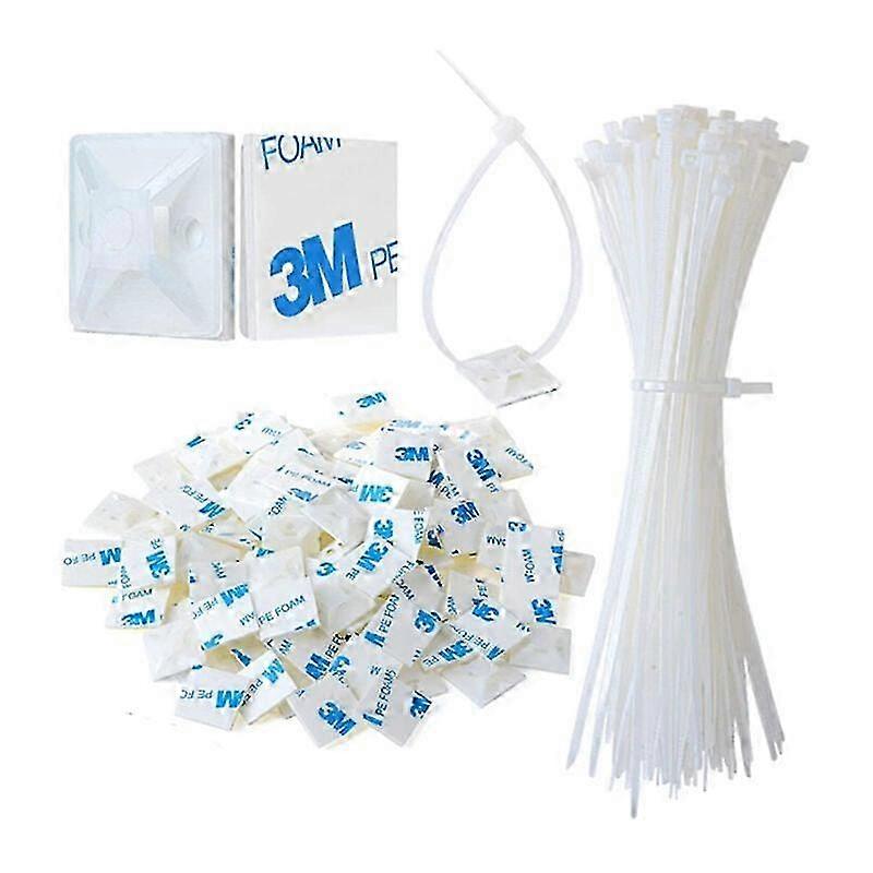 Cable Tie Set <p>MATERIAL: These cable straps are made of high quality nylon material. The strong adhesive makes it stick firmly, suitable for clean, flat and dry place</p> <p>Package Includes: with 50 pieces white cable tie mounting base, size 20 x 20 mm + 50 pieces white cable tie, size 3 x 100 mm</p> <p>Easy to Stick: The self-adhesive cable tie mounting base is really easy to stick on the smooth surface, working well with the nylon cable tie</p> <p>Space Saving: You can use cable ties to fix some cables and organize these cables, such as sticking them on the wall. This will save your space from the messy environment and will never destroy the beauty of the furniture.</p> <p>Cable ties are great tools at home, office, workshop, computer room.</p> <p>Quantity: 100 pieces</p> <p>Note: Other items are not included, the color is based on the first picture, and the other pictures are just for effect.</p> <p>Due to the differences between different monitors, the picture may not reflect the actual color of the item.</p> <p>Due to manual measurement. Please allow deviation. Thank you!</p><p>Welcome to meet</p> Note: Due to the light and screen setting difference, the item's color may be slightly different from the pictures. Please allow slight dimension difference due to different manual measurement.