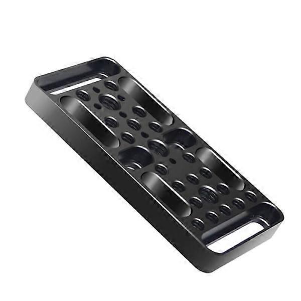 1. Product Function/Purpose: The product can be connected to various release plates, has a wide range of applications, and is very practical. It can be connected to rail clamps, release plates, cameras, batteries, handles, etc. 2. Features and Selling Points: The product is made of aluminum alloy and CNC machined in one piece. It features multiple 1/4 and 3/8 threaded holes and is designed with Alai positioning holes. It has waist grooves horizontally and vertically. 3. Aluminum Alloy Surface Technology: The surface is anodized. Color: Black Material: Aluminum Alloy + Stainless Steel Size: Approx. 99 x 50 x 10 mm Package Contents: 1 x Shift Plate Only the above package content, other products are not included. Note: Light reflection and different displays may cause the color of the item in the picture to differ slightly from the real thing. The allowed measurement error is +/- 1-3 cm.