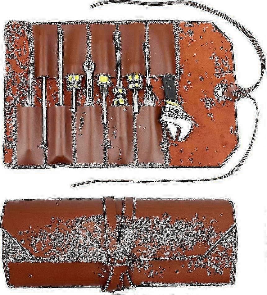 Canvas Tool Roll Organizer with 10 Pockets - Multi-Purpose Wrench/Pliers Roll-Up Pouch for Workshop & Travel Storage_ZKD22