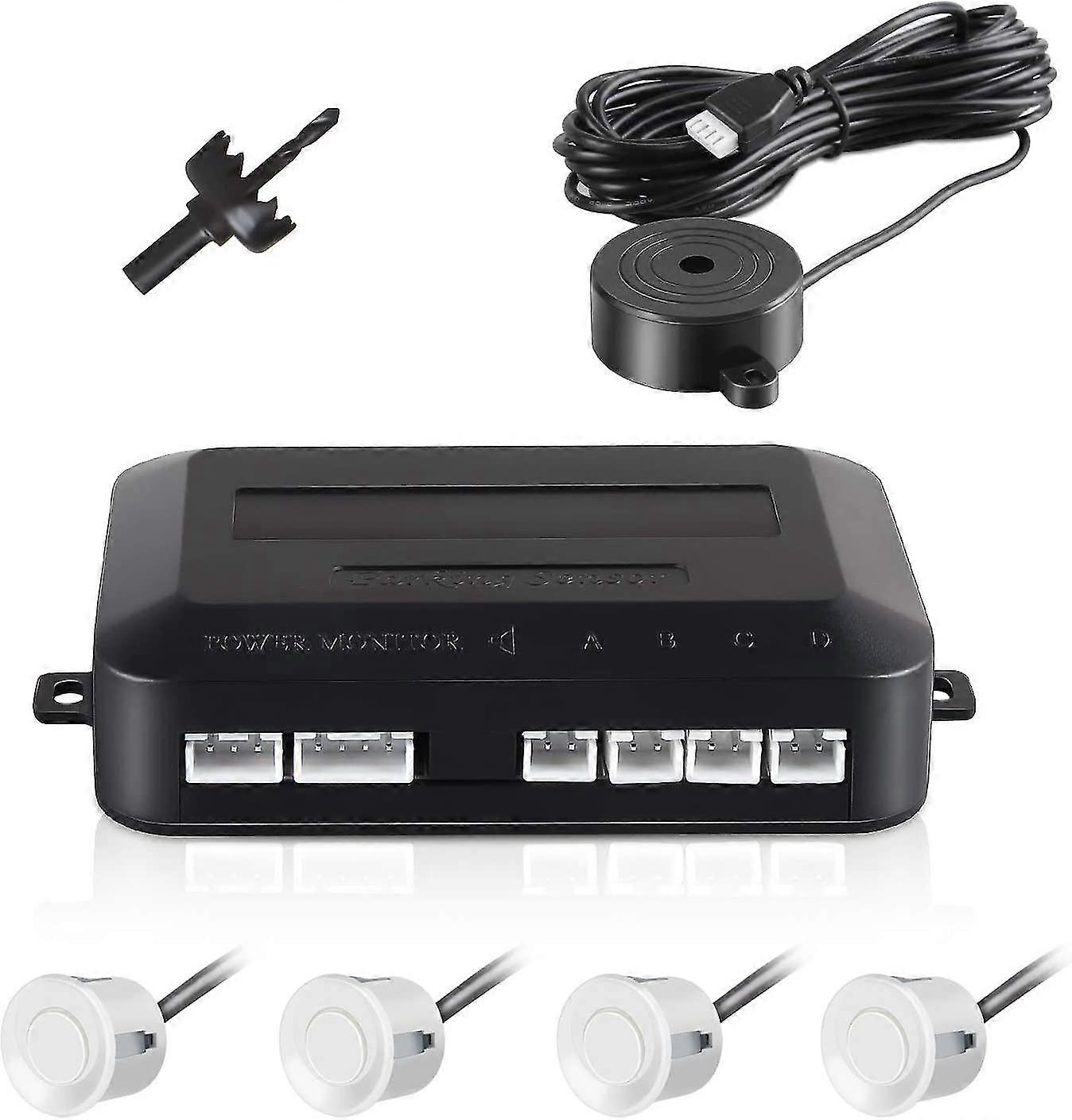 Car Reversing Sensor, Car Reversing Radar Auto Parking System With Buzzer Alarm And 4 Sensors - White XiXi