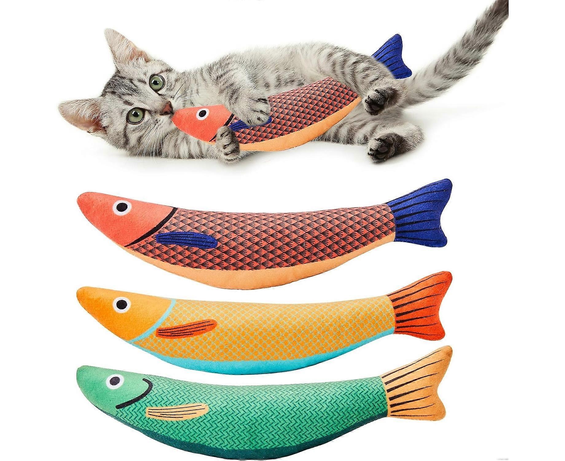 Cat Toys Saury Fish 3 Pack with Catnip and Crinkle Sound, Soft and Durable, Interactive Indoor Cat Kicker Toys, Promotes Kitten Exercise