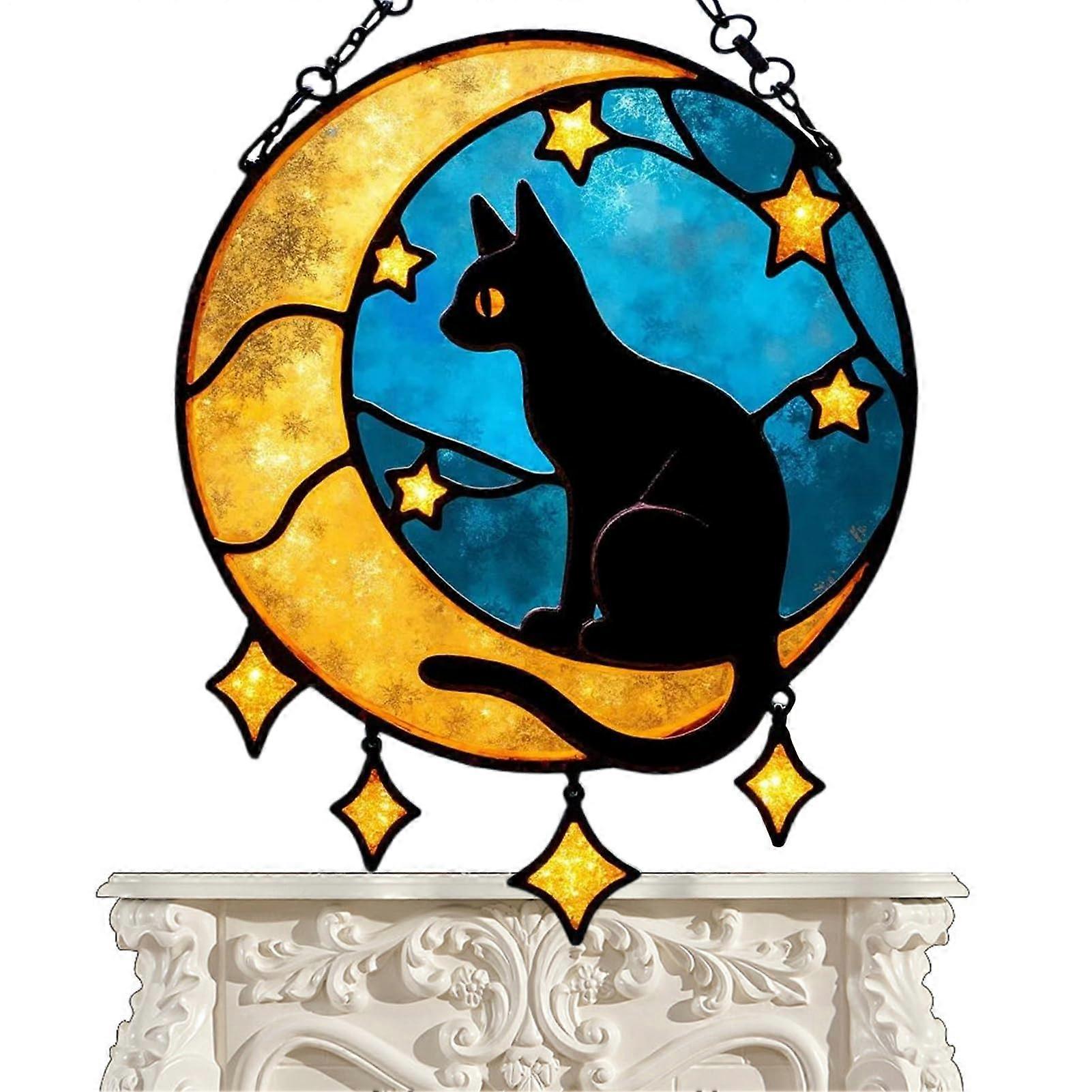 Cat Window Sun Catcher - Acrylic Moon Cat Pendants For Wall Decor - Balcony, Living Room, Bedroom, Coffee Shop