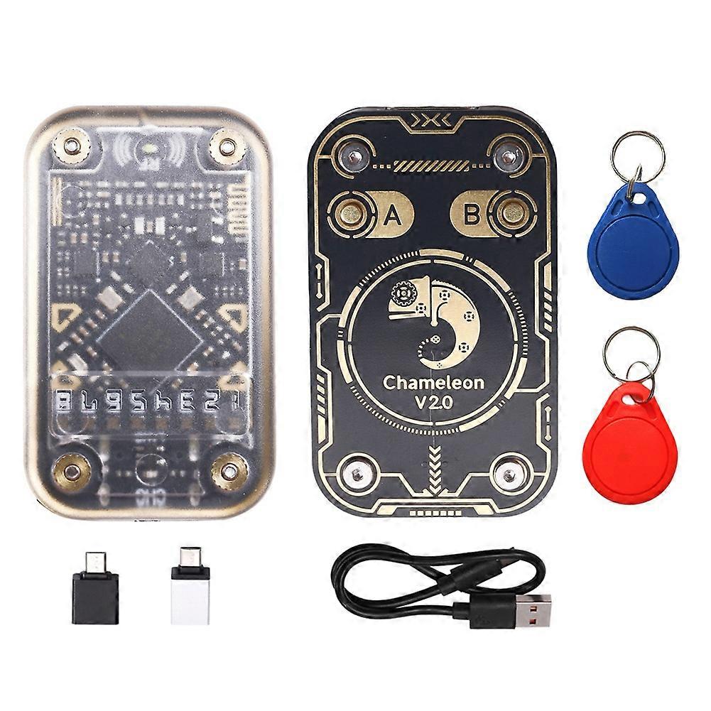 Upgraded Version Chameleon V2.0,with Restart function, you can double-press two buttons to restart in case of battery failure. Our small and versatile device can clone and emulate a wide range of RFID tags and cards. With This Device, you can create copies of RFID tags and cards, which can be used to access secure areas or equipment that require RFID authentication. You can also emulate and stores different types(125KHZ/13.56MHZ) of RFID cards. This Device is a valuable tool for anyone working with RFID technology, whether you're an engineer, security professional, or just a curious hobbyist. And thanks to its compact and portable design, you can take it with you wherever you go! Due to different batches, there may be differences in product appearance, color, and printed text, which will not affect the use. Color: Transparent Shell Material: plastic Package Contents: 1 x RFID Reader 2 x Adapter(Random color and appearance,Specified color and appearance are not accepted, the interface remains unchanged) 1 x USB Cable (Random color,Specified color is not accepted) 1 x Lanyard 1 x UID Keychain (Random color,Specified color is not accepted) 1 x CUID Keychain (Random color,Specified color is not accepted)