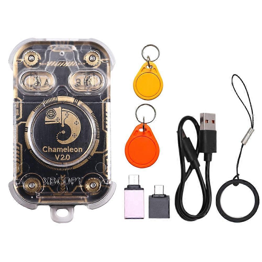 Upgraded Version Chameleon V2.0,with Restart function, you can double-press two buttons to restart in case of battery failure. Our small and versatile device can clone and emulate a wide range of RFID tags and cards. With This Device, you can create copies of RFID tags and cards, which can be used to access secure areas or equipment that require RFID authentication. You can also emulate and stores different types(125KHZ/13.56MHZ) of RFID cards. This Device is a valuable tool for anyone working with RFID technology, whether you're an engineer, security professional, or just a curious hobbyist. And thanks to its compact and portable design, you can take it with you wherever you go! Due to different batches, there may be differences in product appearance, color, and printed text, which will not affect the use. Color: Transparent Shell Material: plastic Package Contents: 1 x RFID Reader 2 x Adapter(Random color and appearance, specified color and appearance are not accepted; the interface remains unchanged and does not affect usage) 1 x USB Cable (random colors, don't accept the specified color) 1 x Lanyard 2 x CUID Keychain (random colors, don't accept the specified color)