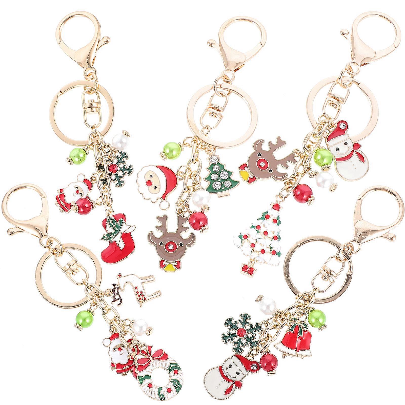 Christmas Key Chain Alloy Key Chains for Decor 5Pcs Assorted Color