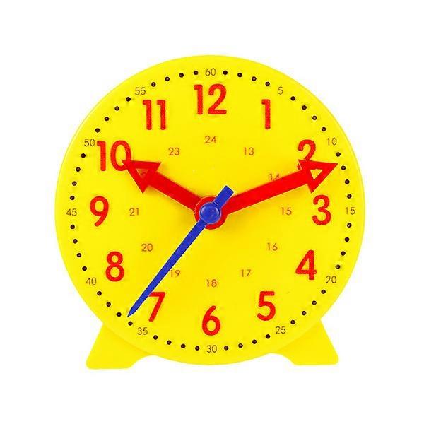 Children's Learning Clock, Student Time Learning Clock 12/24 Hour Product Description Material: Plastic Size: 10 * 10.2 cm Color: Yellow Quantity: 1 pc Package Contents: 1 * 24-hour three-needle linked clock Model 1. This intellectual development learning clock can help children easily learn time and digital knowledge, which is helpful for early education of basic time-tracking skills. Durable, non-toxic, and durable molded plastic clock is non-toxic and harmless to health. Durable and drop-resistant. Easy to read Clear hour and minute markings are easy to read. Perfect for children under 4 years old. Children learn to read correctly and set time, distinguish hours, minutes, and seconds, and use quarter and half correctly. Interactive Toys Share fun with children by playing and encourage parent-child communication. Perfect Gift This is the perfect gift for family or friends who spend time studying.