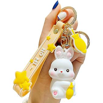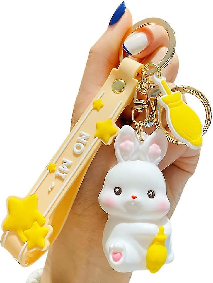 Cmfyart Girl Women Creative Cute Lover Holding Umbrella Happy White Rabbit Bunny Keychain Key Ring, Girlfriend Valentine Lover Christmas Birthday Coll