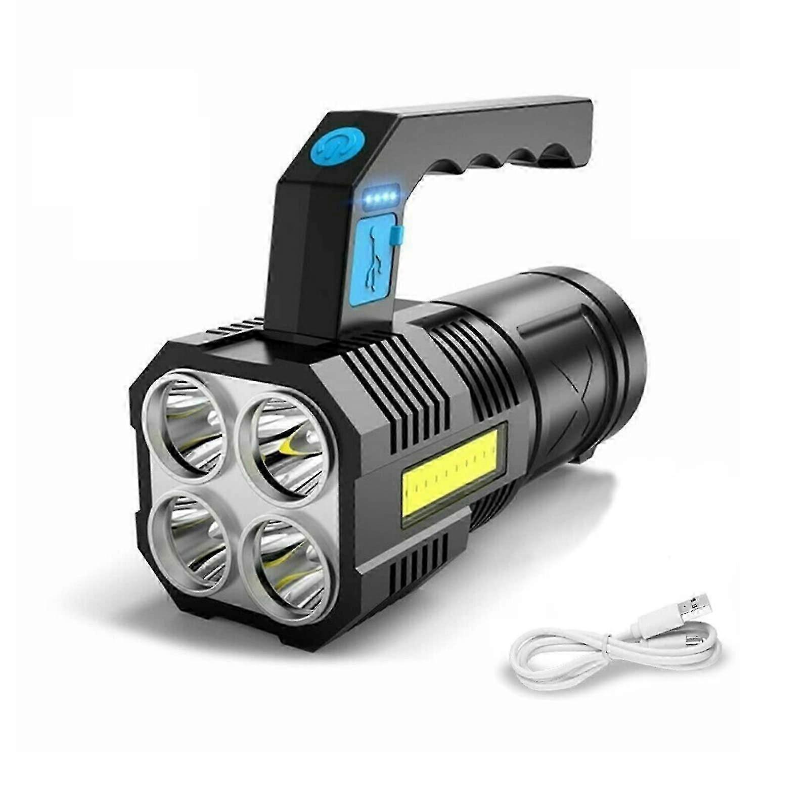 Cob Waterproof Rechargeable Work Flashlight with 4 Modes: Portable Emergency Torch for Hiking, Fishing, & Camping Use