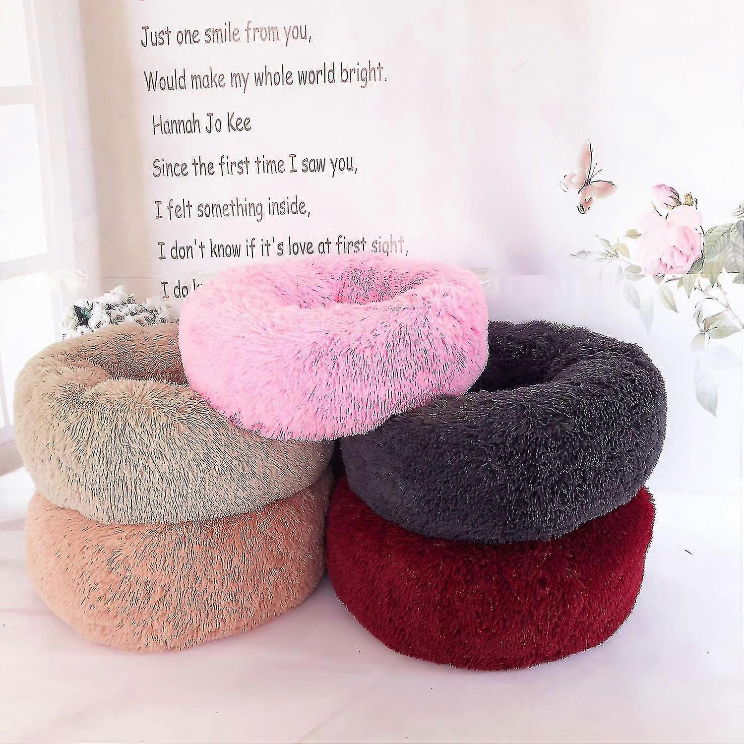 (Coffee) Pet Bed,Dog Cat Round Warm Cuddler Kennel Soft Puppy Sofa Cushion Outer Diameter 40 Cm