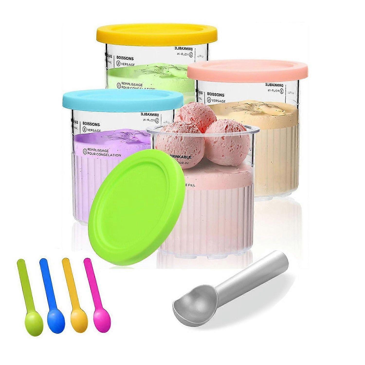 Compatible With Ninja Creami Ice Cream Containers - 4-Pcs With 4 Scoops