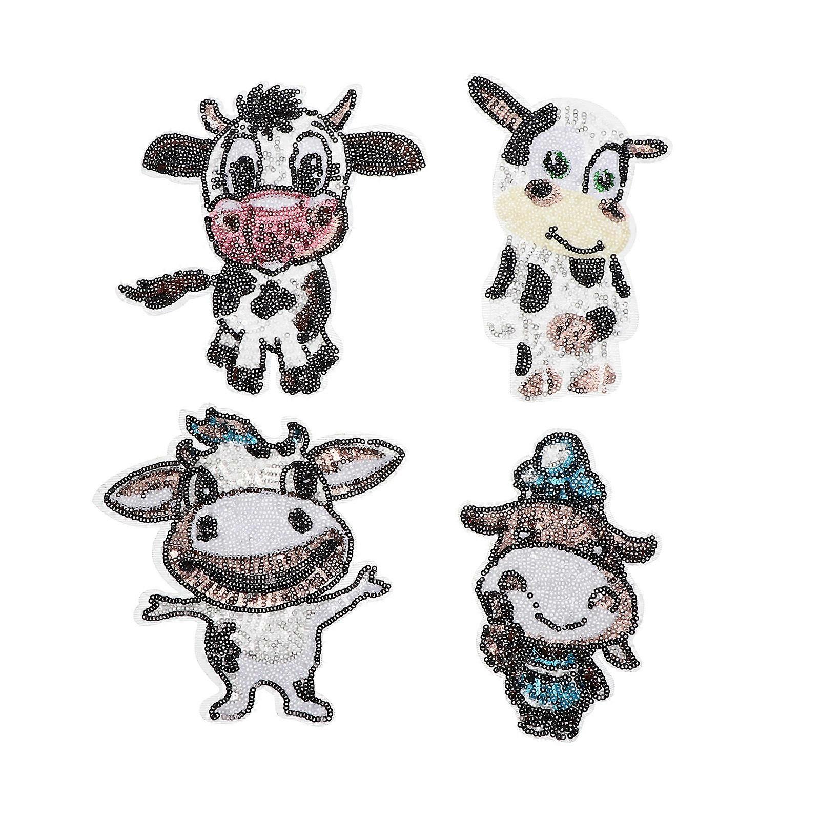 Creative Cow Patch for Sewing Clothes 4Pcs Iron on Applique Set