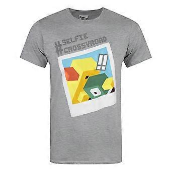 Crossy Road Mens Short Sleeved T-Shirt Grey Selfie