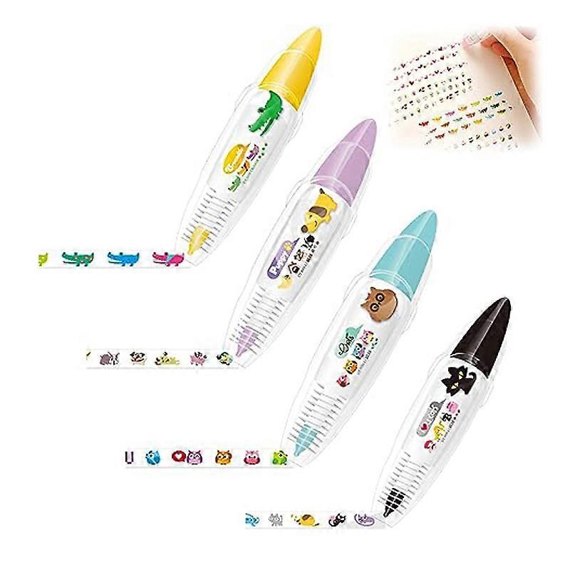 Cute Animals Press Type Decorative Pen 4Pcs Scrapbooking Diary Decorative Correction Tapes
