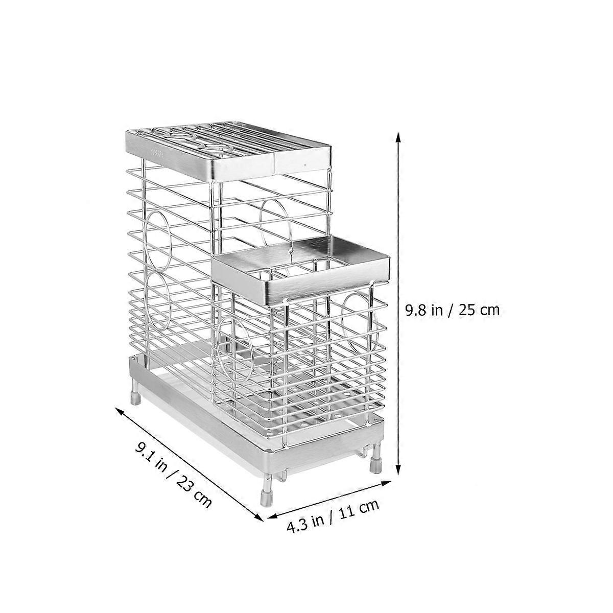 Cutlery Organizer Storage Rack Multi-Functional Tool Holder Silver 25X23cm Anti-Rust Technology 1Pack