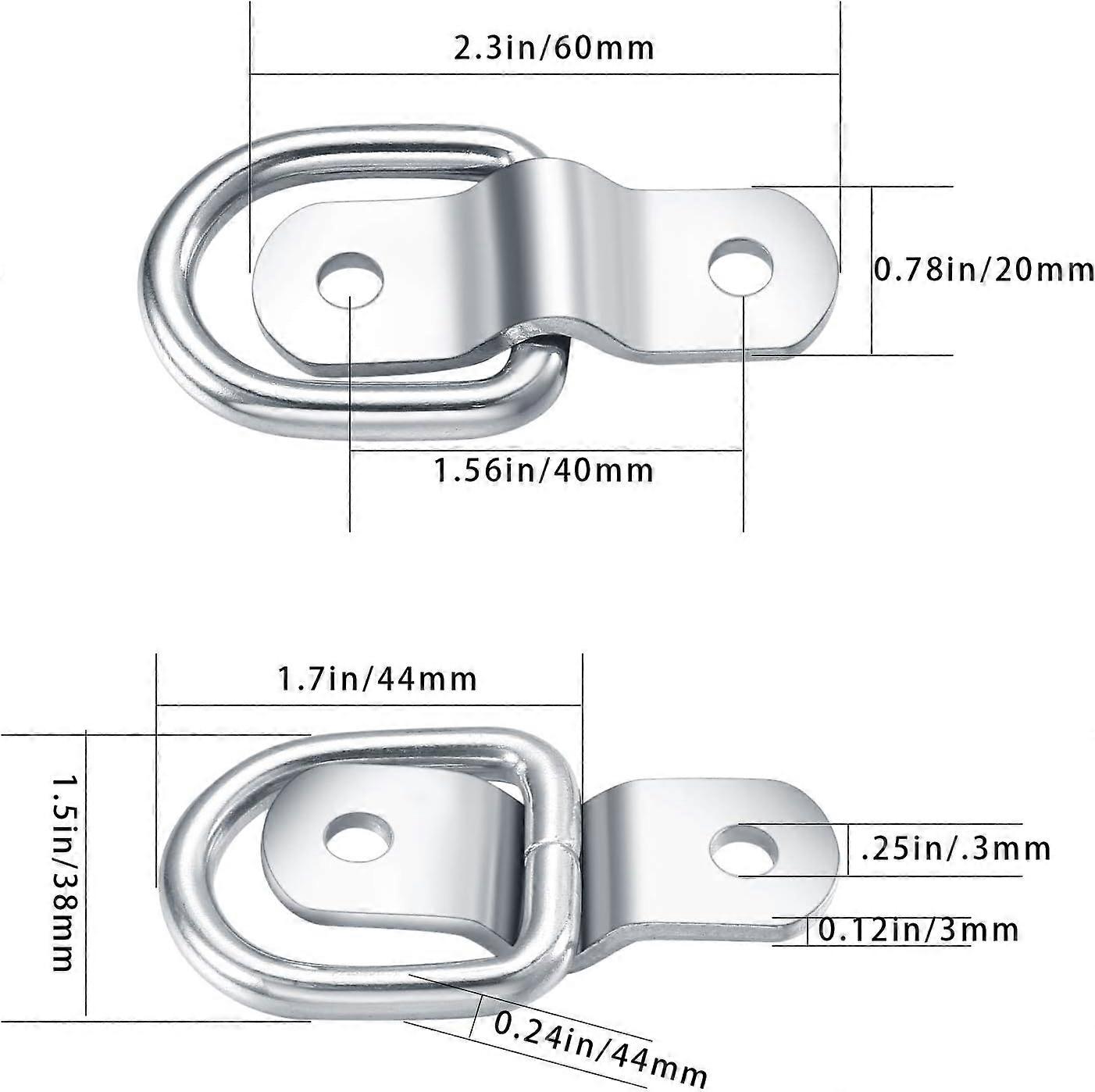 D-Rings, Stainless Steel Lashing Hook, Lashing Ring Mounting Ring, Lashing Strap 6 Pcs and 12 Screws for Car Trailer, Wooden Hammock, Camping