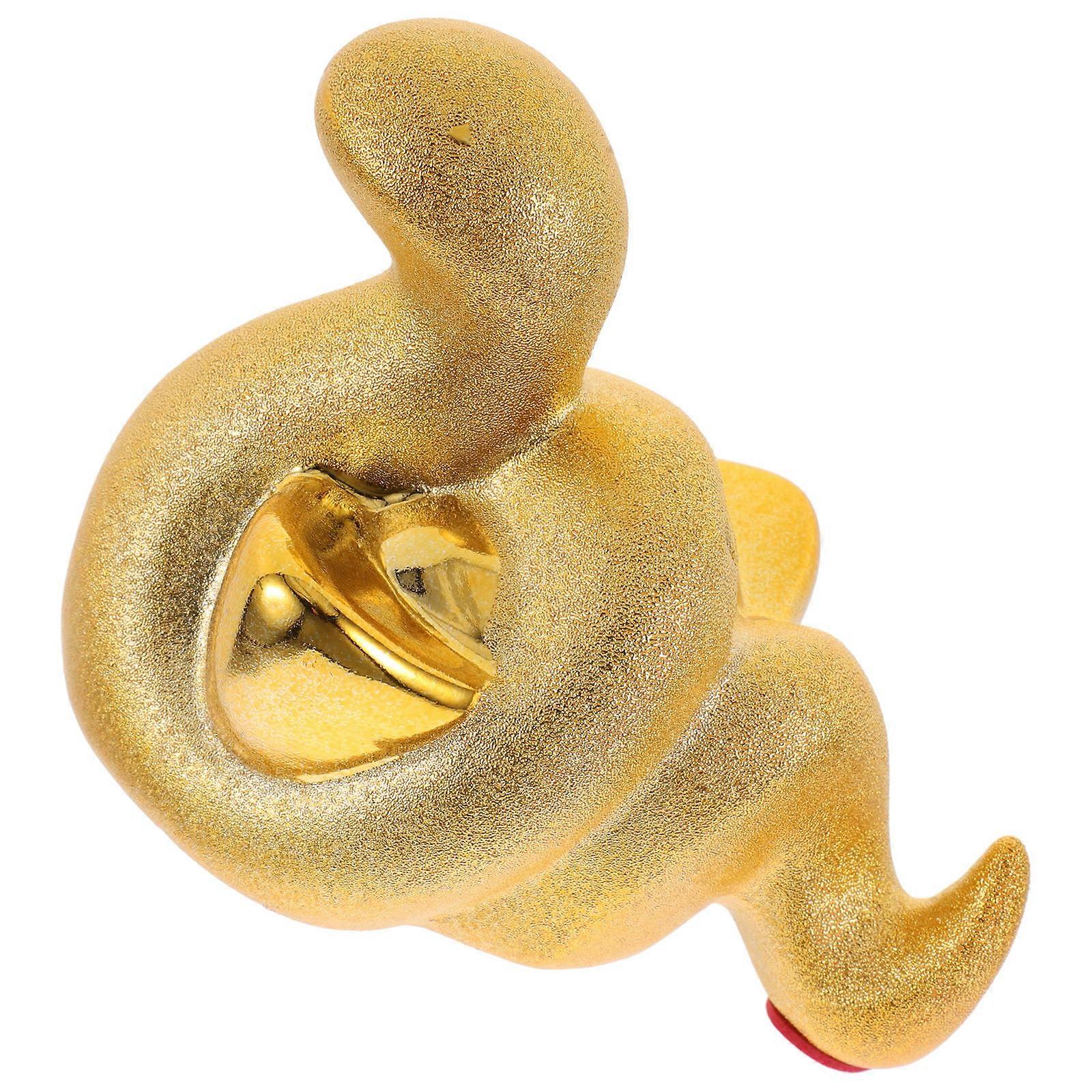 Decorative Snake Shape Storage Container for New Year Holidays Golden Ceramic Saving Function 1Set