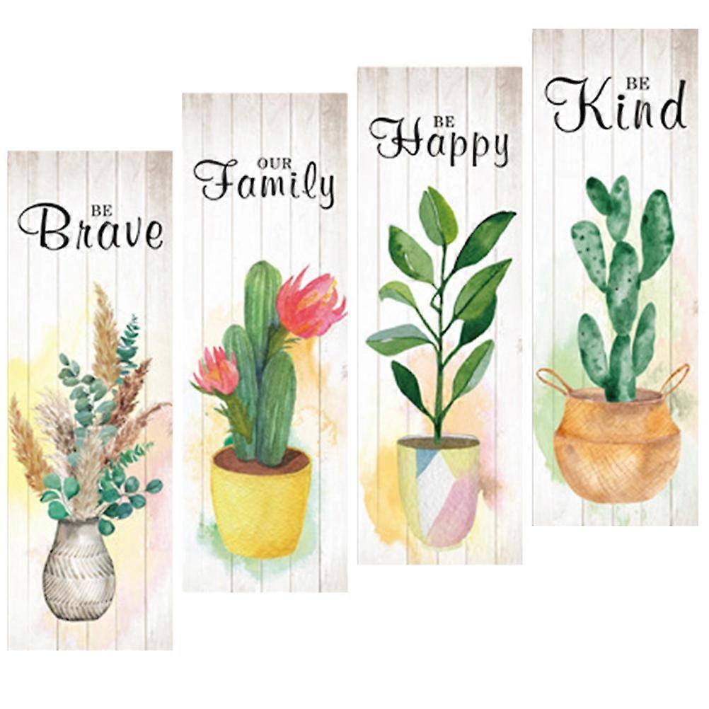Decorative Wood Sign Wall Art Hanging Decor Multi Colored 30x10cm Rectangular Home Space 4Pack