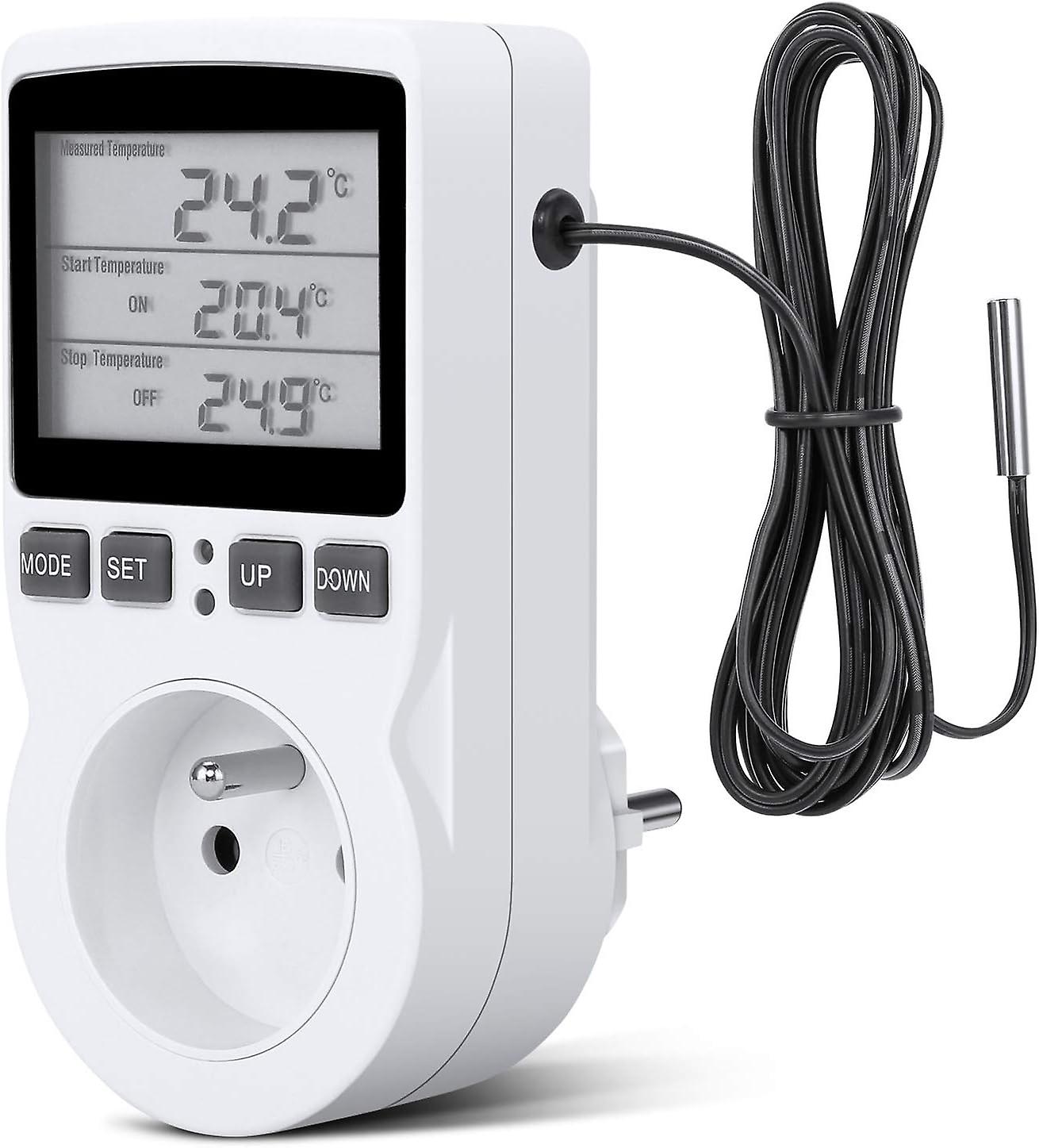 Digital Temperature Controller, Heating Cooling Thermostat Socket LCD Temperature Controller, 250v (Fr Plug)