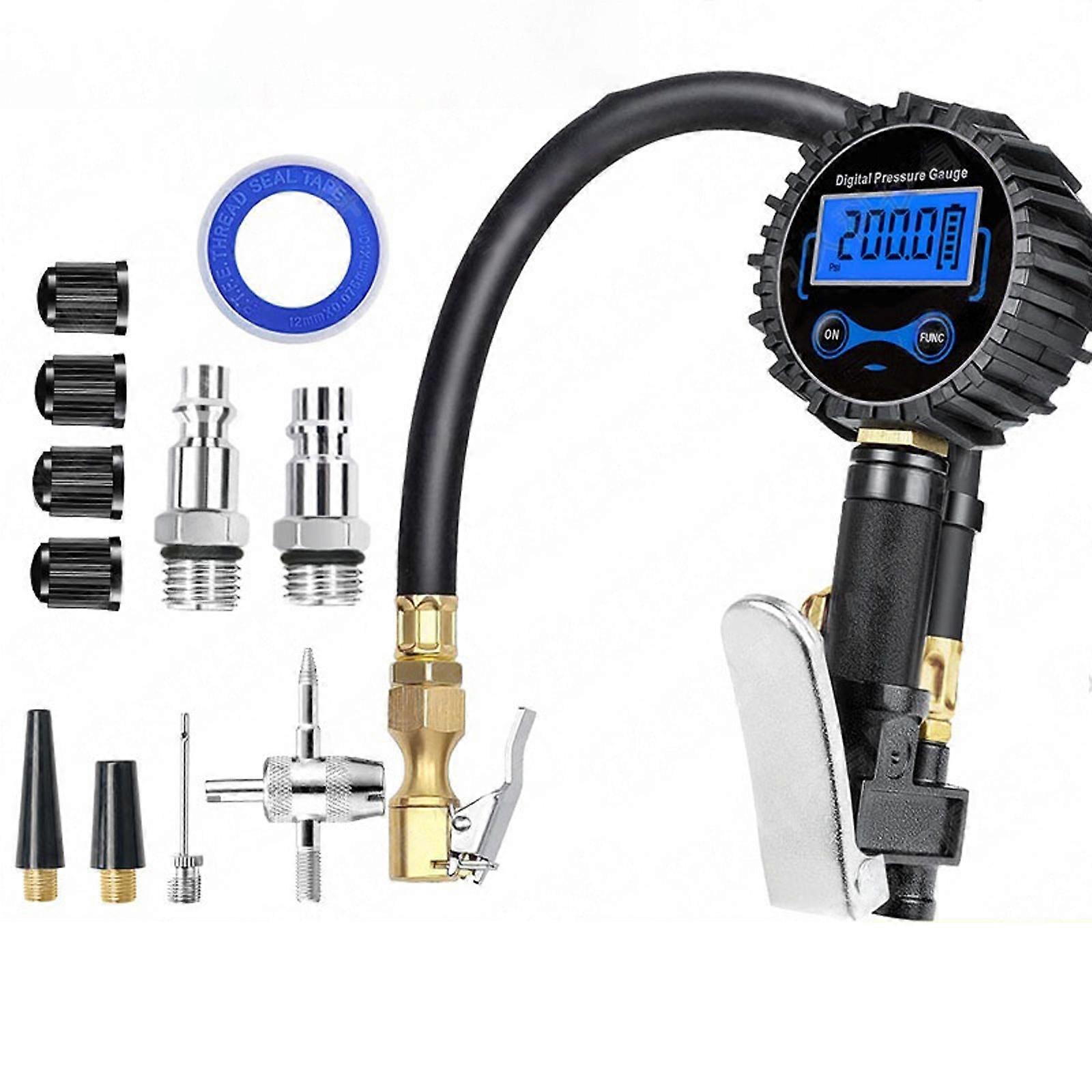 Digital Tire Pressure Checker and Inflator Tool with Large LCD Display Air Pressure Gauge 3-200PSI Measurement Ranges Multicolor