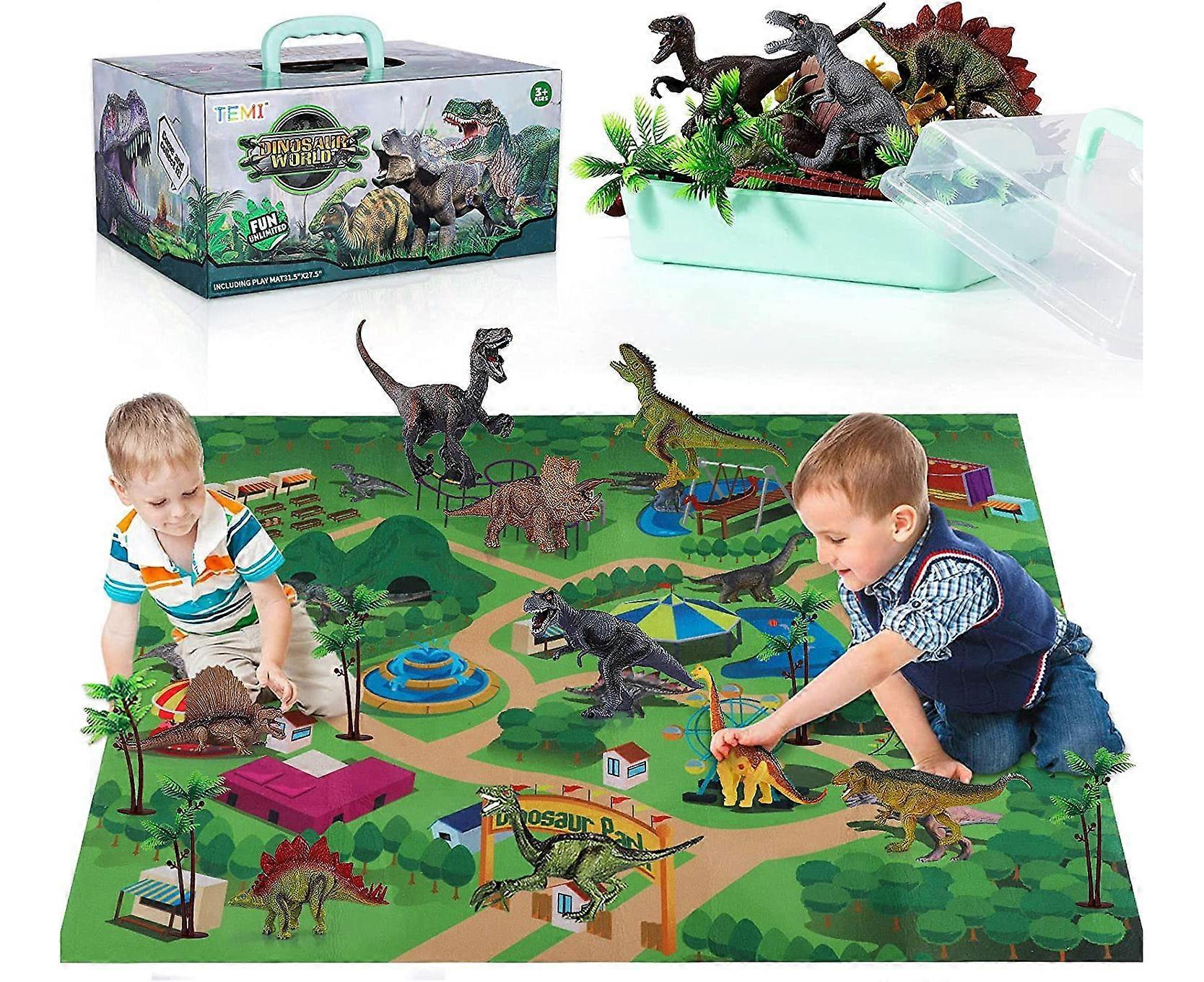 Dinosaur Toy Figure w/ Activity Play Mat & Trees, Educational Realistic Dinosaur Playset to Create a Dino World Including T-Rex, Triceratops, Velocira