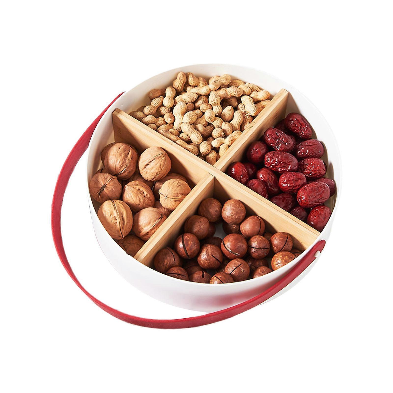 Divided Candy Box Nut Platters 4 Compartment Dried Fruits Box Tray with Handle Round Appetizers Tray for Party, Entertaining Multicolor