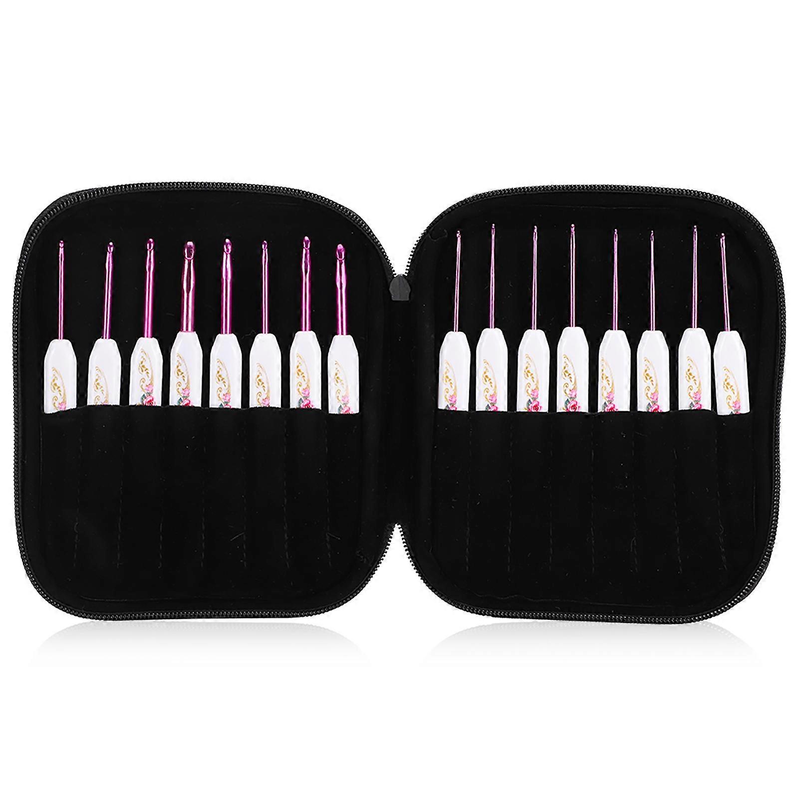 DIY Knitting Tool Crochet Hook Aluminum Set with Blue & White Porcelain Pattern Handle(Pink Crochet Hook Set )