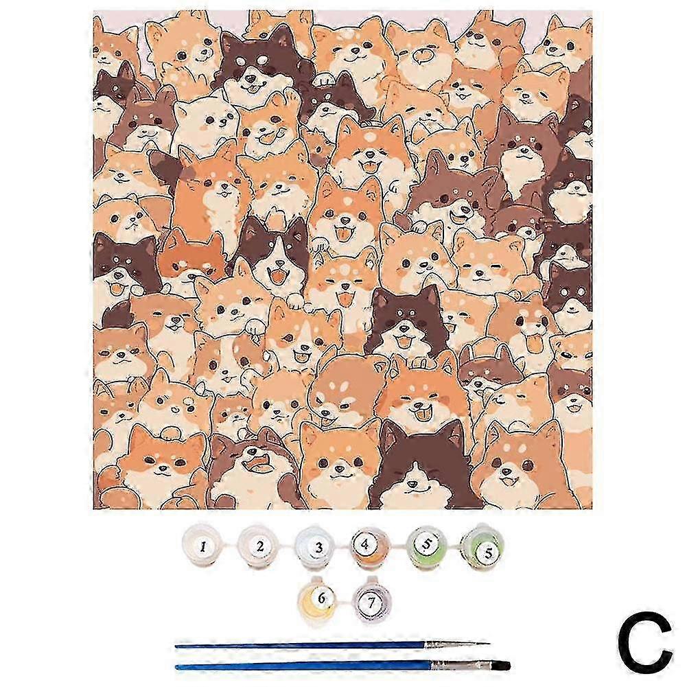 Diy Cartoon Digital Oil Painting 2 Brush+ Compact Pigment Cat Puppy Home Decor