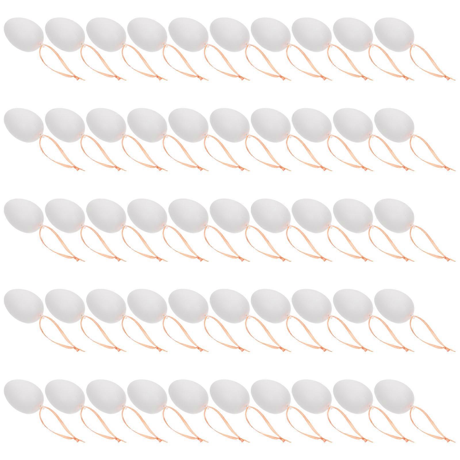 DIY Eggs Pendent Plastic Hanging Decor for Easter Party 50Pcs White