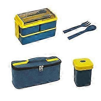 Double-layer portable kids' lunch box with fork and spoon, microwave bento box