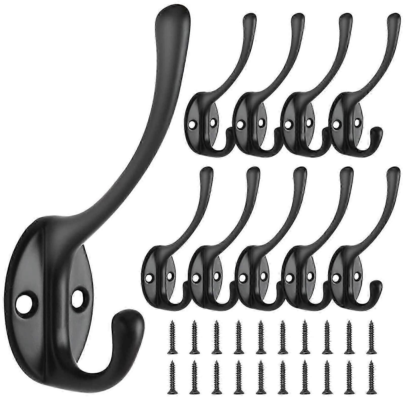 Sturdy MaterialThe black retro hook is made of zinc alloy. The spray treatment on the surface of the wall coat hook not only gives the simple coat hook a matte texture, but also is waterproof, rust-proof and scratch-proof. Double Hook DesignThese metal hat hooks are different from other common hooks because they are designed with double pins, which can hang more items and save space. Can do heavier things. 15KG maximum load-bearing capacity. Vintage Coat HooksThese gooseneck hooks are sturdy enough to hold 2 or more items. They come in retro black for a classic, casual style that complements most home decor and gives your friends or neighbors your unique taste. SIZEThe retro coat hook measures 9.6 x 2.8 x 5.2 cm / 3.78 x 1.1 x 2.05 inches. The screws are 18mm long and allow the door hooks to be screwed deeper into the board for stability. Wide ApplicationsThese double wall hooks are suitable for bedrooms, bathrooms, closets, entryways and offices to hang coats, hats, backpacks, purses, jackets, keys, bags and more space.