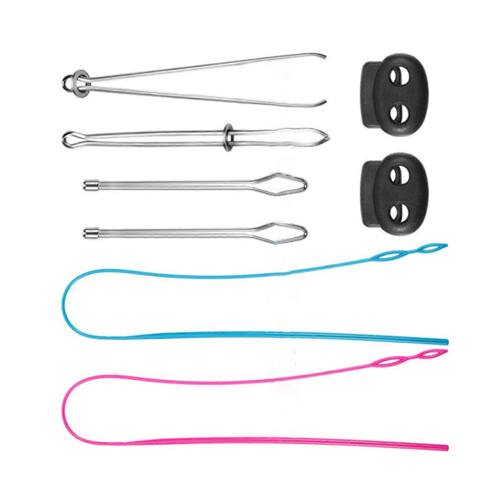 Drawstring Threader Set Flexible/Flat Drawstring Threader, Stainless Steel Sewing Loop Turners Hook, Tweezers, Cord Lock Multicolor