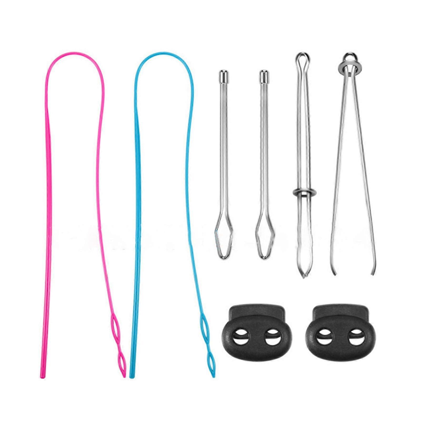 Drawstring Threader Set Flexible/Flat Drawstring Threader, Stainless Steel Sewing Loop Turners Hook, Tweezers, Cord Lock Multicolor