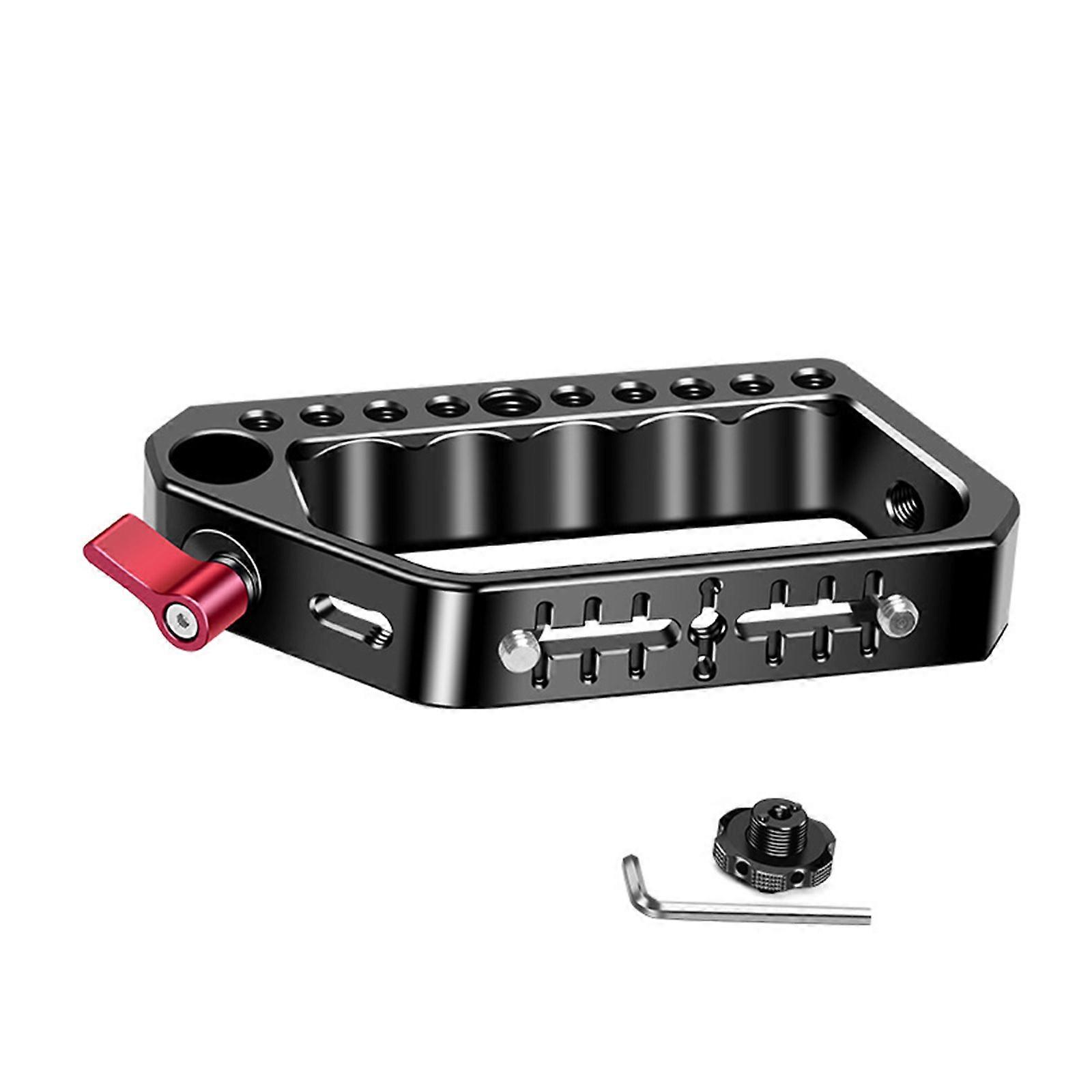 Features: Universally DSLR Camera Cage with double Cold Shoe Mounts & Ergonomic Top Handle,Built from durability aluminum alloy, this rings shaped cage enhances stability for professional shoot while allowing simultaneous attachment of flashing, mic, and lighting accessories. Its innovative design optimizes grip flexibility and angles adjustment, featuring two reinforced cold shoe slots and compatibility with tripods/rigs for multidevice setups in dynamic environments. Ideal for videographers, vloggers, and studio photographers requiring secure accessory integration and ergonomic control during extended shoot. Perfect for outdoor documentaries, live streaming event, or studio productions where quick equipment swaps and stable handheld operate are critical. Engineered with expandability holes, this lightweight cage transforms DSLRs into versatile imaging systems, supporting LED panels, monitors, and external devices gear. Specifications: Component:Aluminum Alloy Size:Approx.130x60x23mm/5.12x2.36x0.91inch Interfaces:Double Cold Shoe Slot,1/4 Screw Hole,3/8 Screw Hole, Usage scenario: Suitable for outdoor shoot and travel. Package Includes: 1pc Camera Cage note: Please allow 1-3cm errors due to manual measurement. Due to the differences between different monitors, the picture may not reflect the actual item color.