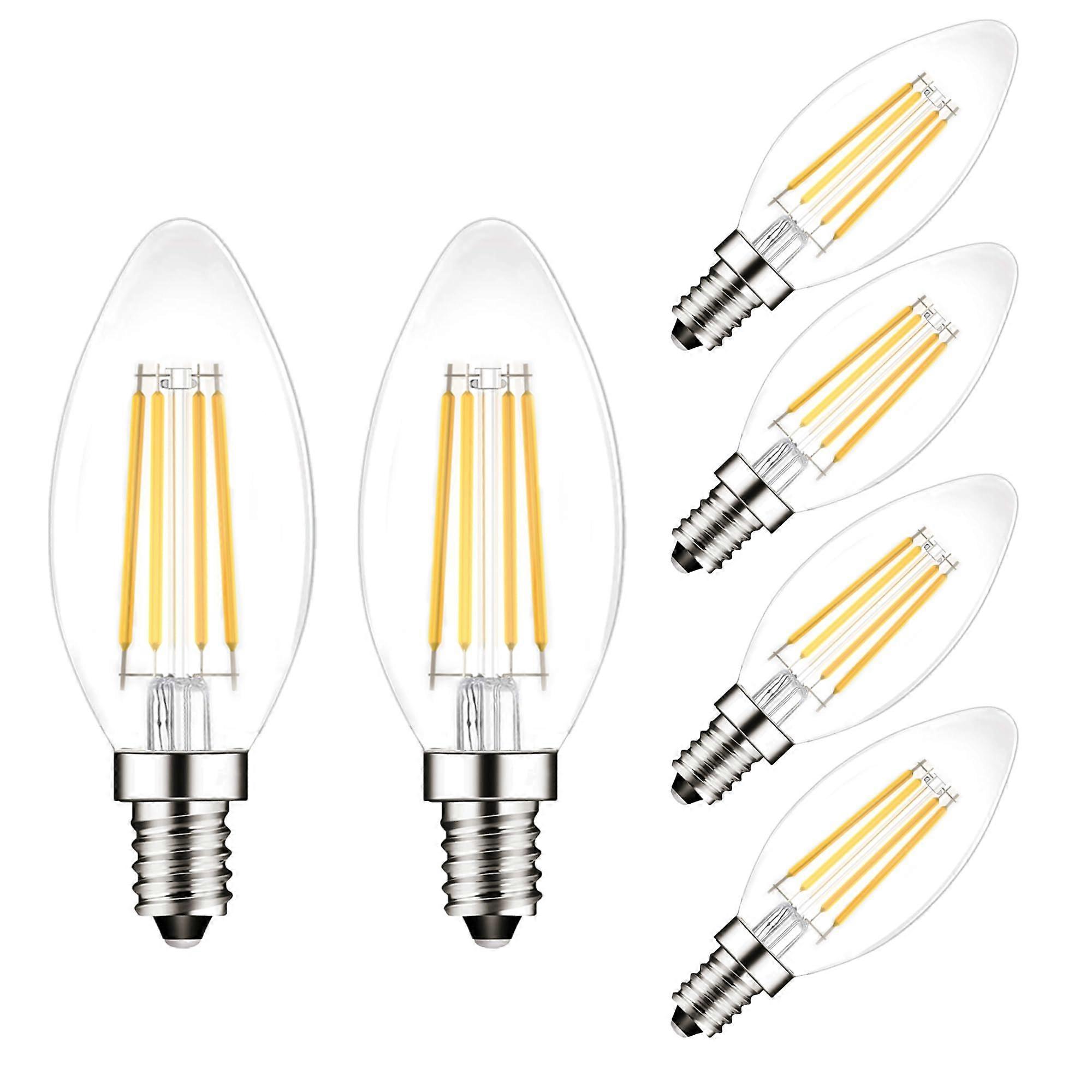E14 Led Candle Light Bulb,Small Screw,4W Equivalent 40W, Warm White 2700K,400Lm,Pack of 6