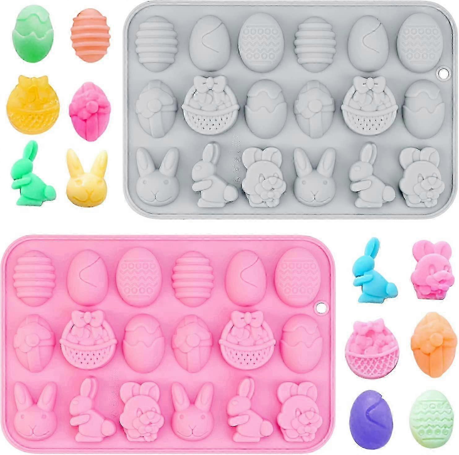 Easter Silicone Molds - 2pcs Chocolate & Easter Egg Bunny Non-stick Bakeware Gift Set