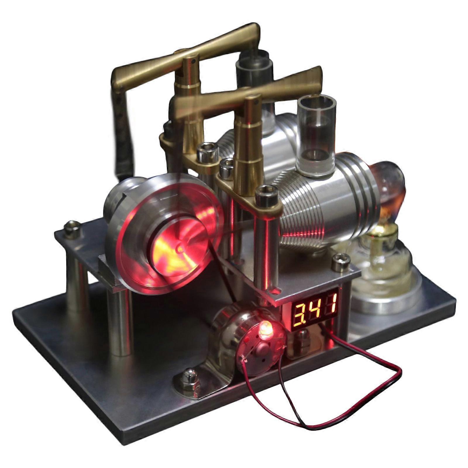 Educational Double Cylinder Stirling Engine Model with Voltage Display And LED Light Energy Conversion Demonstrator Multicolor