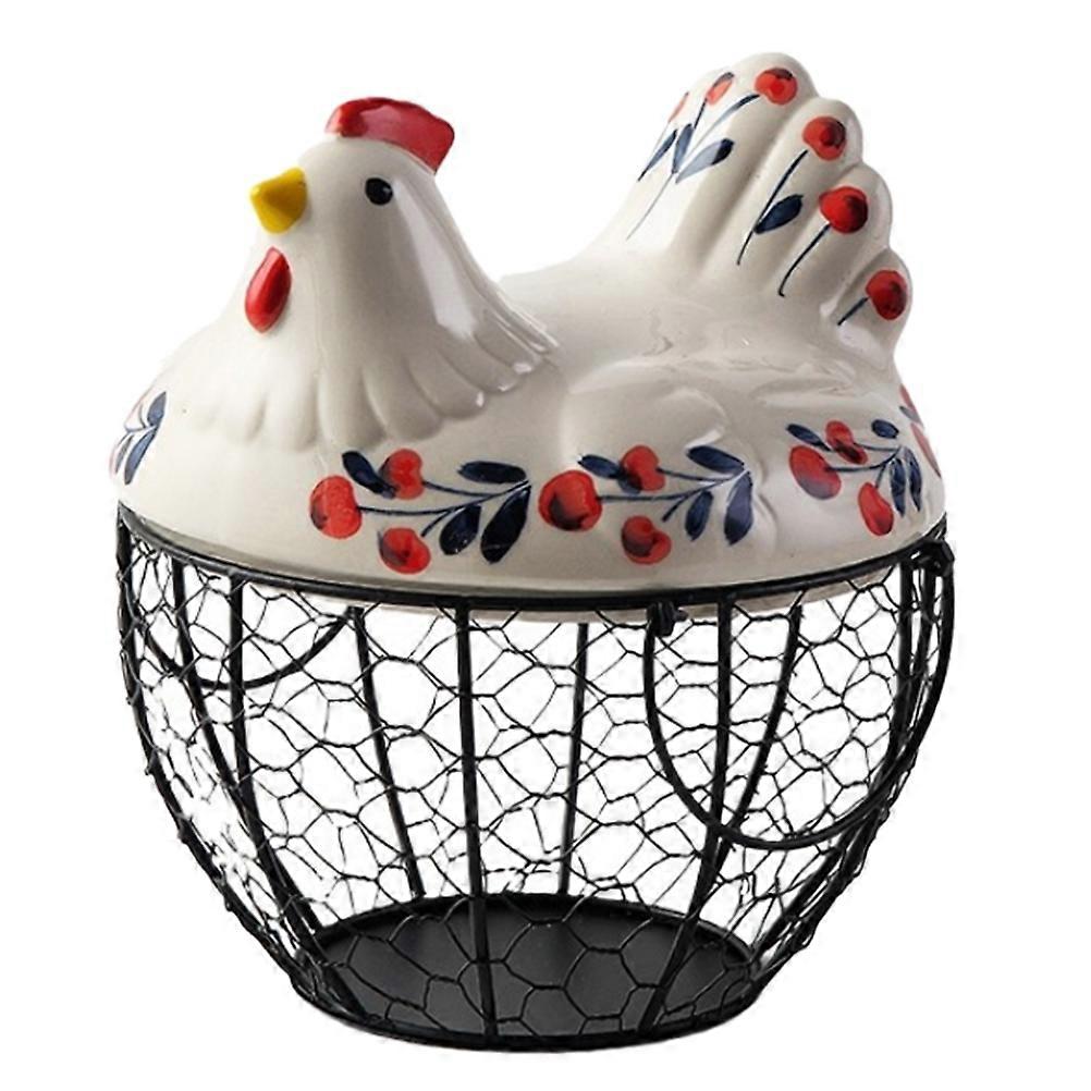 Egg Basket Chicken Shape Storage Basket for Kitchen Use Ceramic Iron Material with Portable Handle 1Set