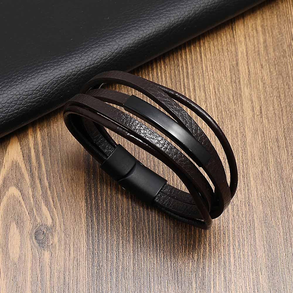 Eif Dock Stainless Steel Handmade Black Bracelet Fashion Men's Jewelry Classic Multilayer Leather Bracelet Homme Birthday Gift