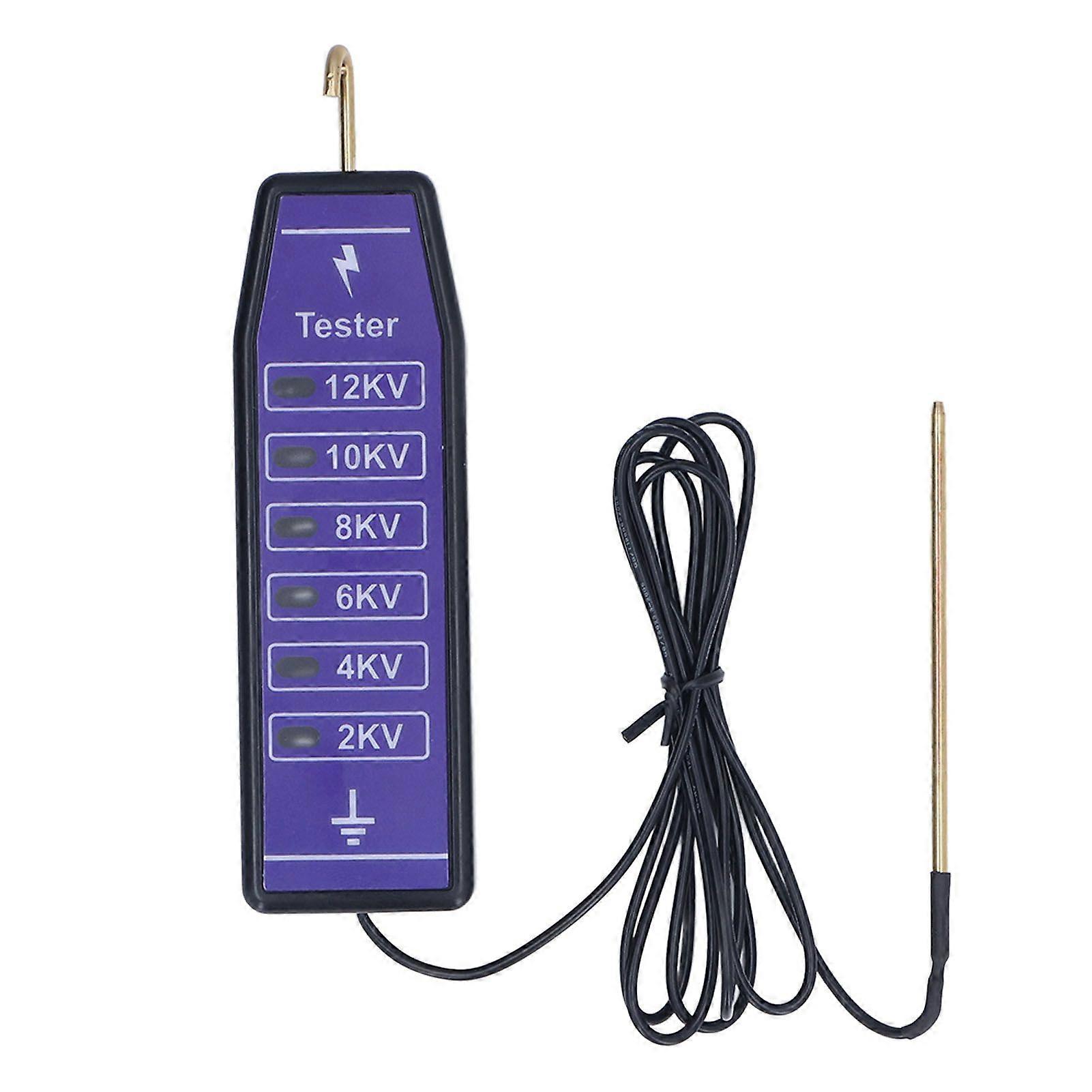Features1Wide Voltage Range: Electric fence tester with wide voltage test range of 2000?12000V, suitable for low impedance and standard fence controllers. 26 Indicator Lights: Fence voltage tester equipped with 6 indicator lights corresponding to the detection voltage, accurate and practical. 3Better Design: Fence volt tester is light weight and small size, the waterproof fence voltmeter is very convenient to carry. 4 Material: Electric fence meter is made of ABS and copper material, which is very strong in cold weather and long term use. 5Wide Uses: Suitable for voltage measurement of various metal wires, multiple wires, steel wires, multiple tapes, fence wires, exciters, etc.SpecificationItem Type: Electric Fence TesterMaterial: ABS, CopperSize: Approx. 15.5x4x1.5cm / 6.1x1.6x0.6in Weight: Approx. 90g / 3.2ozVoltage Test Range: 2000-12000V (6 gears)Type: Detection SeriesDetection Principle: Gas Ionization PrincipleApplication: Electric Fence Voltage TestWhether It is Waterproof: WaterproofNumber of 6 Indicator Lights: 6pcsWide Applications: Measure the voltage of any metal wire, multi wire, rope and multi tape. Test fence wires, exciters, ground systems, hook wires and fence components. For farms, home gardens, sheep, pets, horses and livestock fence.Package List1 xElectric Fence Tester