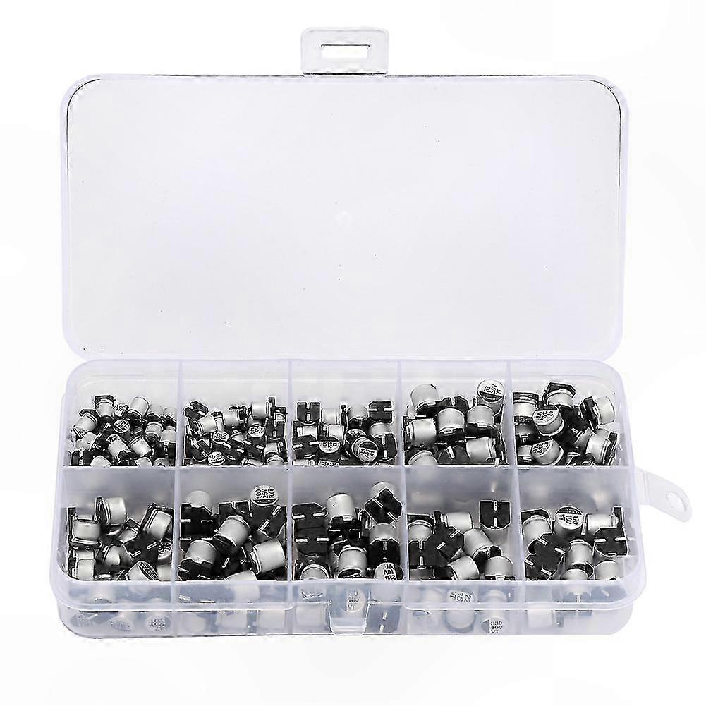 Features: These electrolytic capacitors are compact and offer stable capacitance. The capacitance per unit volume is very large, dozens to hundreds of times larger than other kinds of capacitors. Includes 200 pieces of capacitors in 10 values, meeting various needs and convenient for replacing damaged components. This is a great capacitor set for electronic professionals or enthusiasts. Electrolytic capacitors are widely used in household appliances and various electronic products. Specifications: Quantity: 200pcs Voltage Capacitance Size(DxL) Quantity 50V 1uF 4x5mm 30pcs 50V 2.2uF 4x5mm 30pcs 50V 10uF 6.3x5.4mm 20pcs 50V 33uF 6.3x7.7mm 20pcs 35V 47uF 6.3x5.5mm 20pcs 25V 47uF 6.3x5.7mm 20pcs 25V 100uF 6.3x8mm 20pcs 16V 220uF 6.3x7.7mm 20pcs 10V 330uF 8x10mm 10pcs 10V 470uF 8x10mm 10pcs Package List: 1 x 200pcs Various SMD Aluminum Electrolytic Capacitors Set 1uF-470uF 10V-50V 1 x Package Box