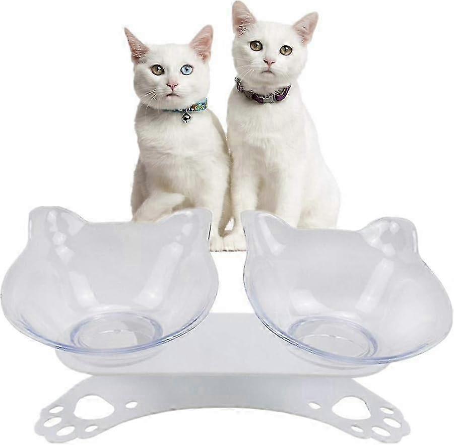 Elevated Double Cat and Puppy Bowl with Stand to Prevent Vomiting, Transparent Anti-Vomiting Design for Your Pets