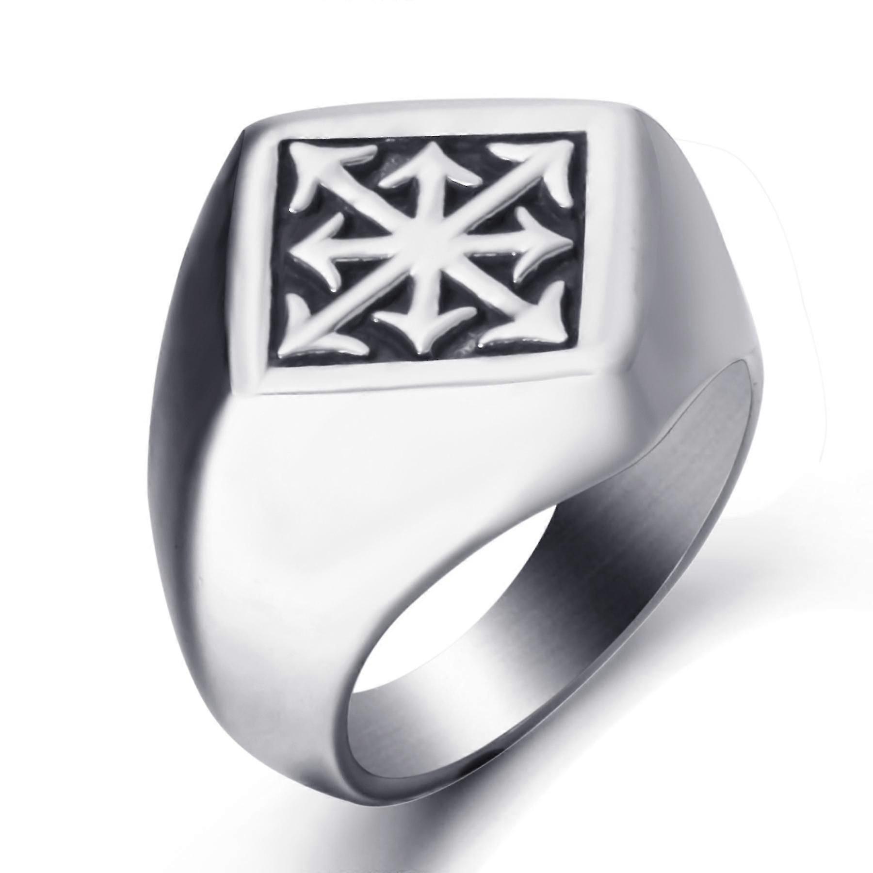 Elfasio Mens Stainless Steel Rings Gothic Magic 8 Pointed Chaos Star Cross Fashion Vintage Jewelry Size 7-15