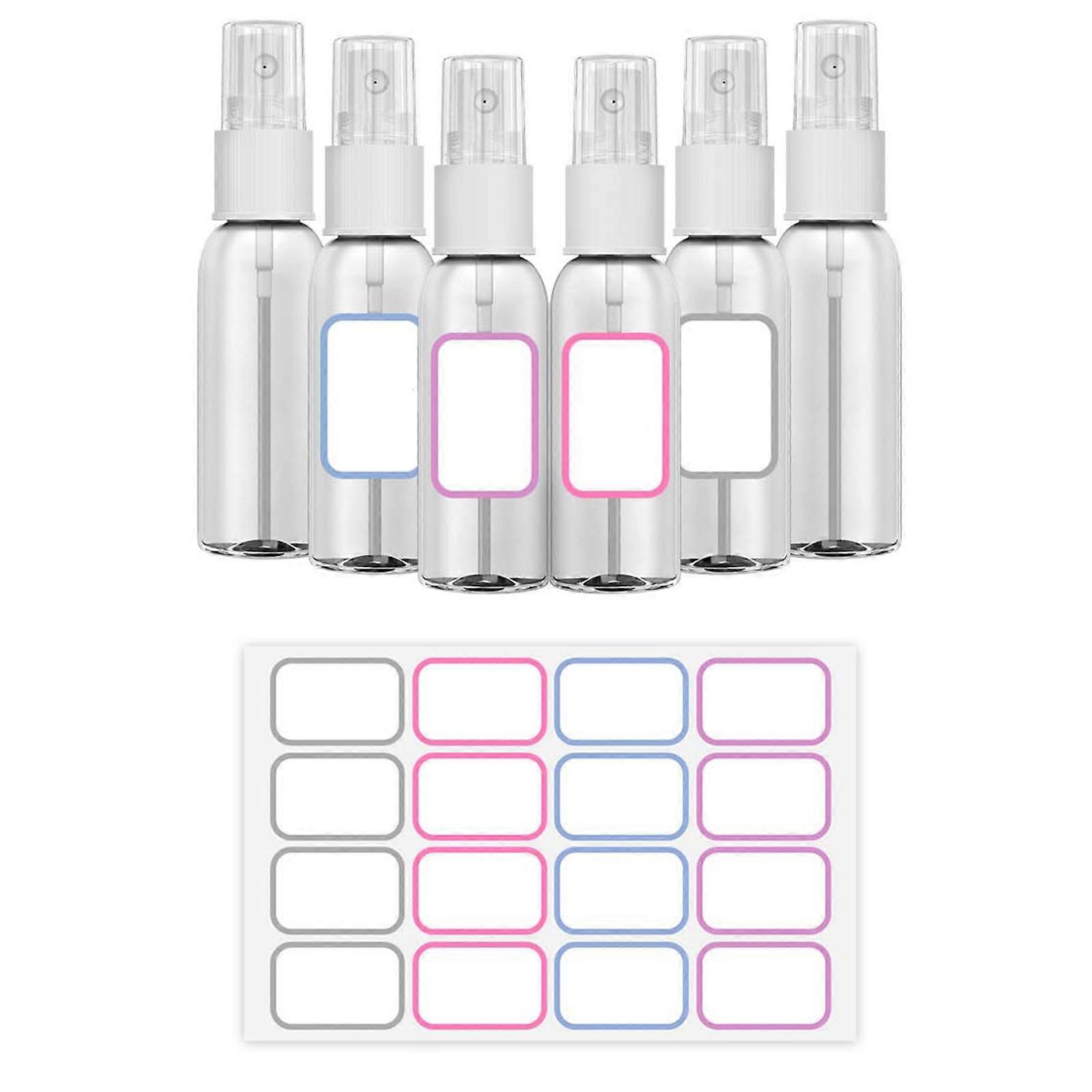 Empty Spray Bottles 6pcs with 12pcs Tags Set 50ml Capacity Refillable for Outdoor Traveling Camping Liquid Lotion Container