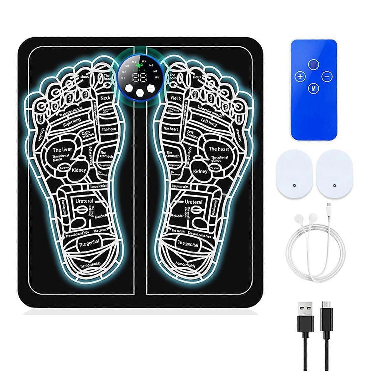 EMS Foot Massager Foldable Feet&Calves Acupoint Massage Mat for Muscles Relaxation Pain Relief 8Modes and 29Intensity A